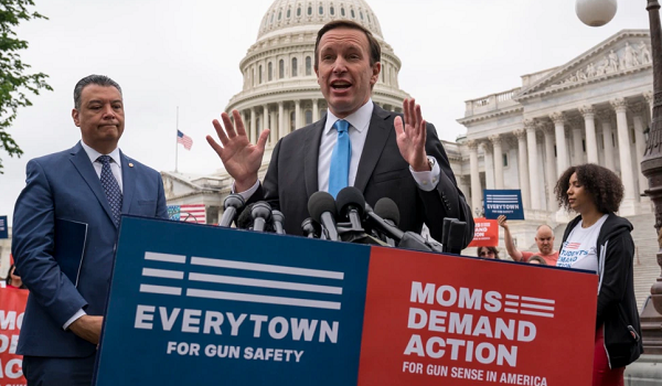 (Dua Senator Demokrat, Chris Murphy dan Alex Padilla (kiri) bercakap pada perhimpunan besar-besaran menuntut kawalan senjata di hadapan Bangunan Capitol, Washington/AP)