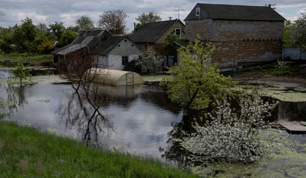 (Antara kawasan masih ditenggelami air di Demydiv, semalam, selepas pasukan Ukraine dikata melepaskan