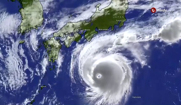 TOKYO, 9 Oktober – Visual daripada laman web Windy.com, menunjukkan Taufan Halong sedang menghampiri kawasan pantai selatan pulau utama Jepun, Honshu, pada Rabu.