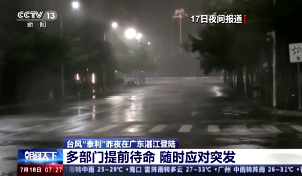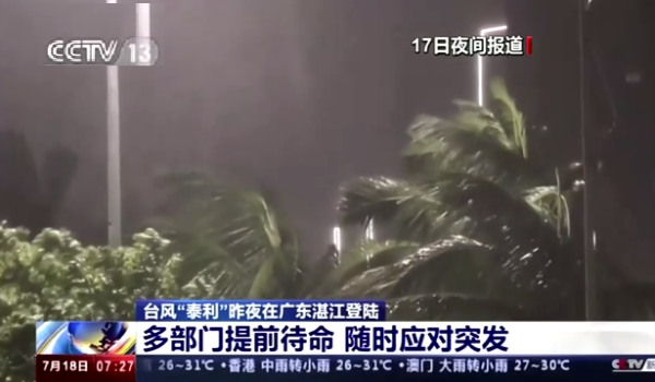 ZHANJIANG, 18 Julai- Taufan Talim yang membadai China pada petang Isnin, mendorong pihak berkuasa mengeluarkan amaran banjir.