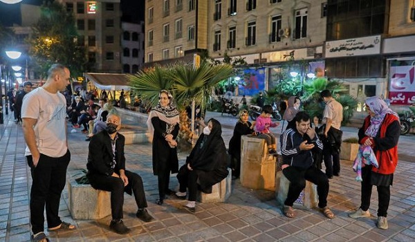 (Rakyat Iran berkumpul di luar bangunan selepas gempa bumi dirasai di ibu negara, Tehran pada 7 Mei 2020 / AFP)