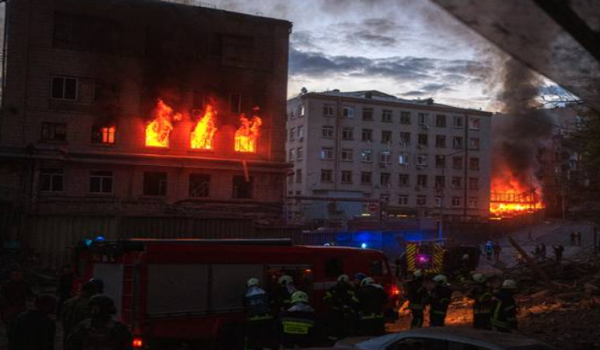 (Petugas perkhidmatan kecemasan berusaha memadamkan kebakaran