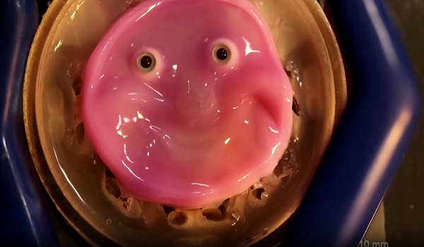 Penyelidik Universiti Tokyo membangunkan sel kulit manusia menjadi bentuk muka dan menggunakan lampiran seperti ligamen yang tertanam untuk menariknya ke dalam senyuman lebar.