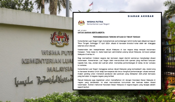“Bagi memastikan tindakan segera dan berkesan dapat diambil sekiranya menghadapi situasi kecemasan, Kementerian Luar telah menubuhkan bilik operasi yang memberi tumpuan kepada Iran, Iraq, Jordan dan Lubnan untuk memantau perkembangan di rantau ini dari semasa ke semasa,” kata kenyataan itu.