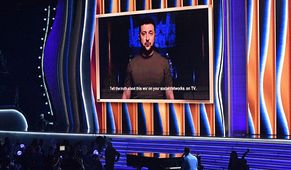 Kemunculan Zelensky pada malam acara muzik terbesar di Amerika Syarikat itu dibuat ketika kemarahan dunia terhadap tuduhan jenayah perang Rusia di Ukraine memuncak.