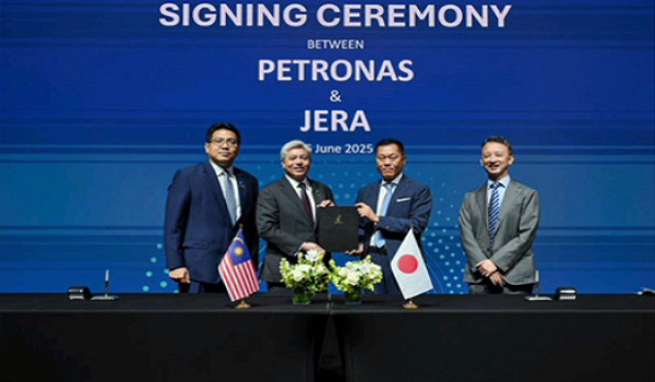 PETRONAS dalam satu kenyataan memaklumkan, MoU itu ditandatangani sempena penganjuran Energy Asia 2025 oleh Naib Presiden Eksekutif Gas dan Perniagaan Maritim PETRONAS, Datuk Adif Zulkifli, dan Pegawai Eksekutif Kanan merangkap Ketua Pegawai Karbon Rendah JERA, Ryosuke Tsugaru.