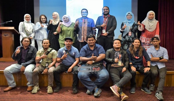 Encik Saifuzzaman Yusop dan krew telefilem kayuh pada majlis pratonton di Angkasapuri)