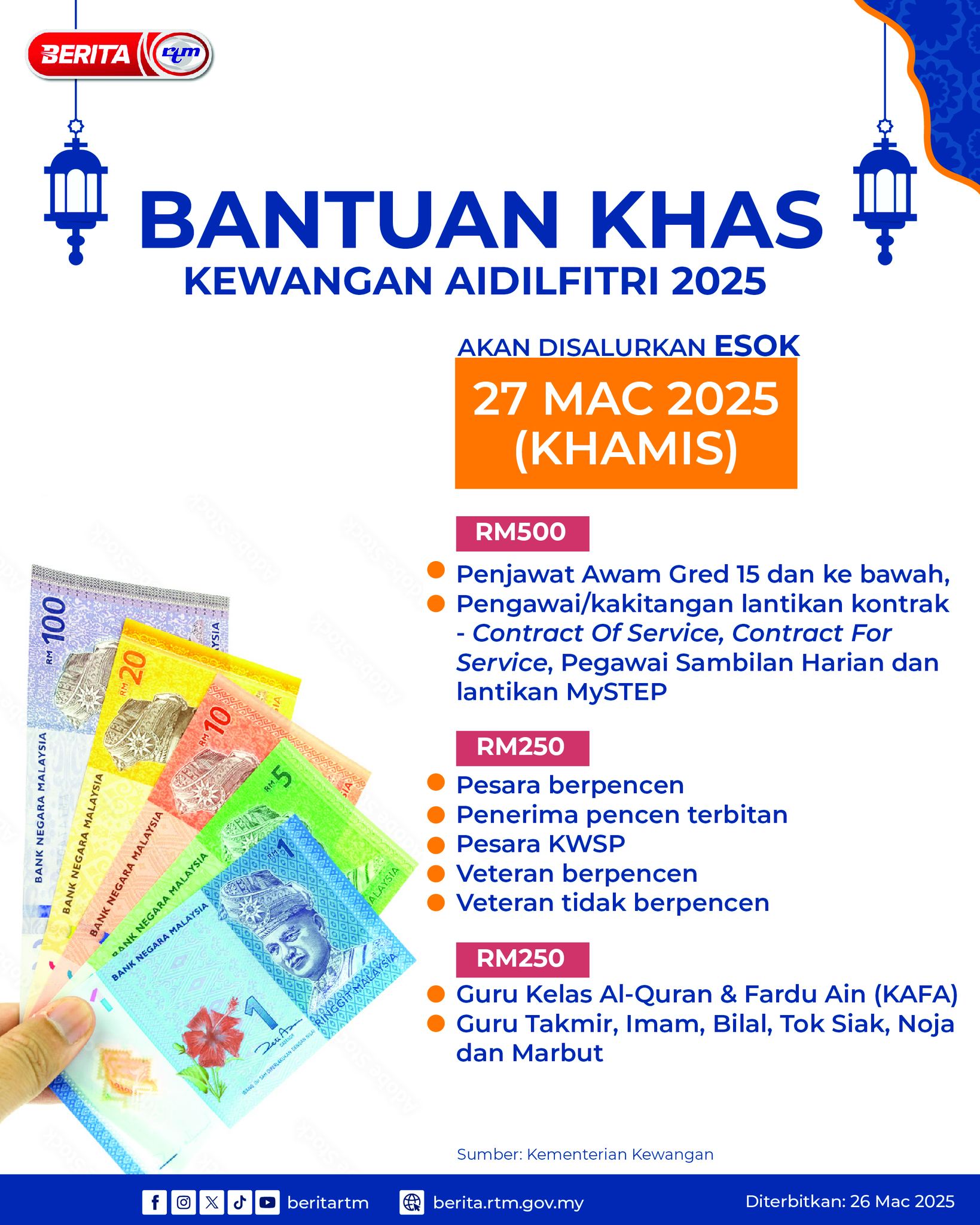 Utama Infografik BANTUAN KHAS KEWANGAN AIDILFITRI 2025 AKAN DISALURKAN 27 MAC 2025 (KHAMIS) BANTUAN KHAS KEWANGAN AIDILFITRI 2025 AKAN DISALURKAN 27 MAC 2025 (KHAMIS)27/03/2025 | 10:46 amInfografik Kongsi berita Share on X (Twitter) Share on Facebook Share on WhatsApp Share on Telegram Berita sebelumnyaPERIKSA KENDERAAN ANDA SEBELUM MEMULAKAN PERJALANAN DI MUSIM PERAYAAN INI.Berita seterusnyaPAKEJ REBAT RAHMAH HARI RAYA AIDILFITRI 2025 ERATKAN SILATURAHIM MENERUSI ... PALING POPULAR Test Dunia Test Dunia