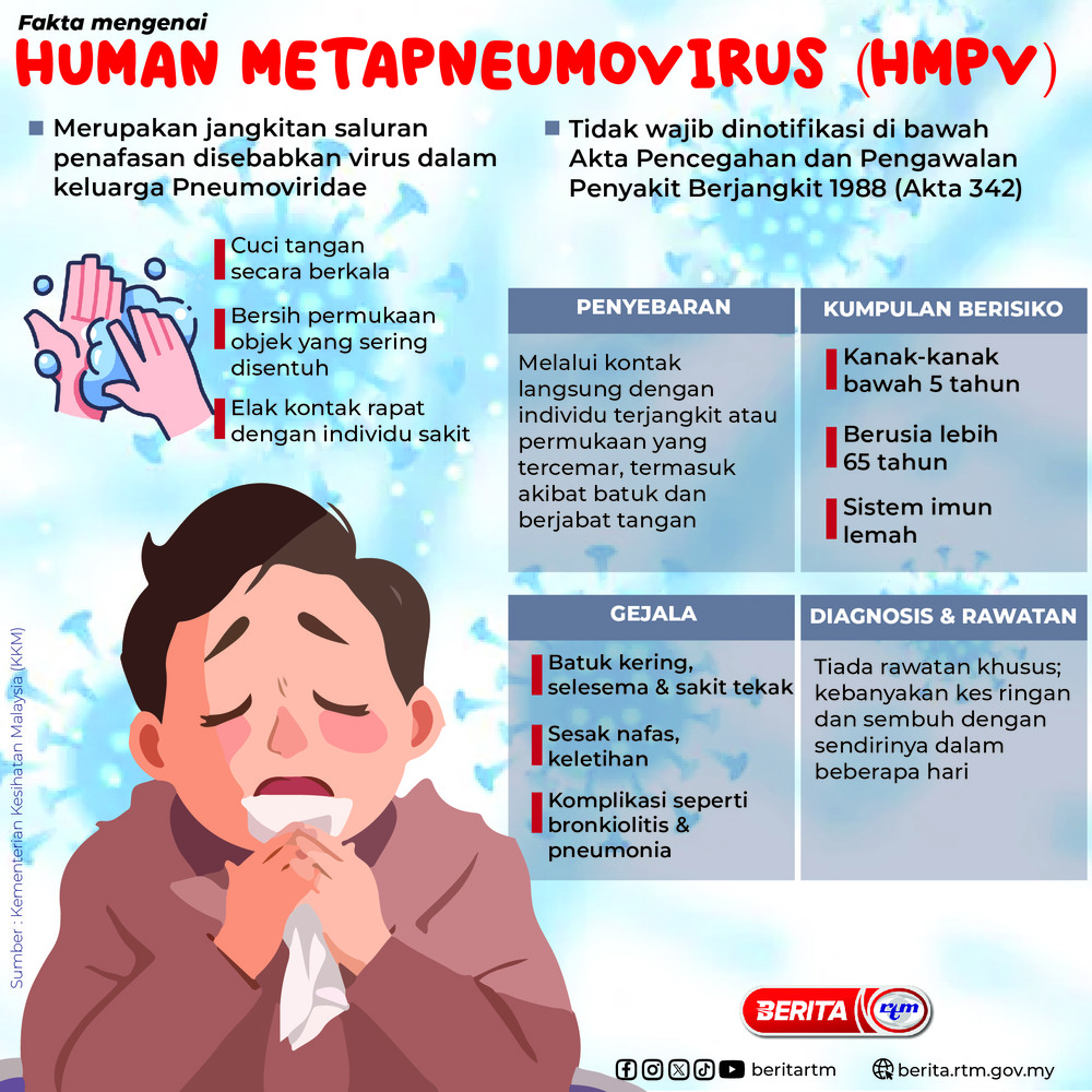 Utama Infografik FAKTA MENGENAI ‘HUMAN METAPNEUMOVIRUS’ (hMPV) FAKTA MENGENAI ‘HUMAN METAPNEUMOVIRUS’ (hMPV)9/01/2025 | 7:04 pmInfografik Kongsi berita Share on X (Twitter) Share on Facebook Share on WhatsApp Share on Telegram Berita sebelumnya572 unit barangan elektrik tiruan dirampasBerita seterusnyaPM lancar inisiatif Kiosk Sentuhan MADANI PALING POPULAR Test berita palsu PRN DUN SABAH TEST 534 Sukan