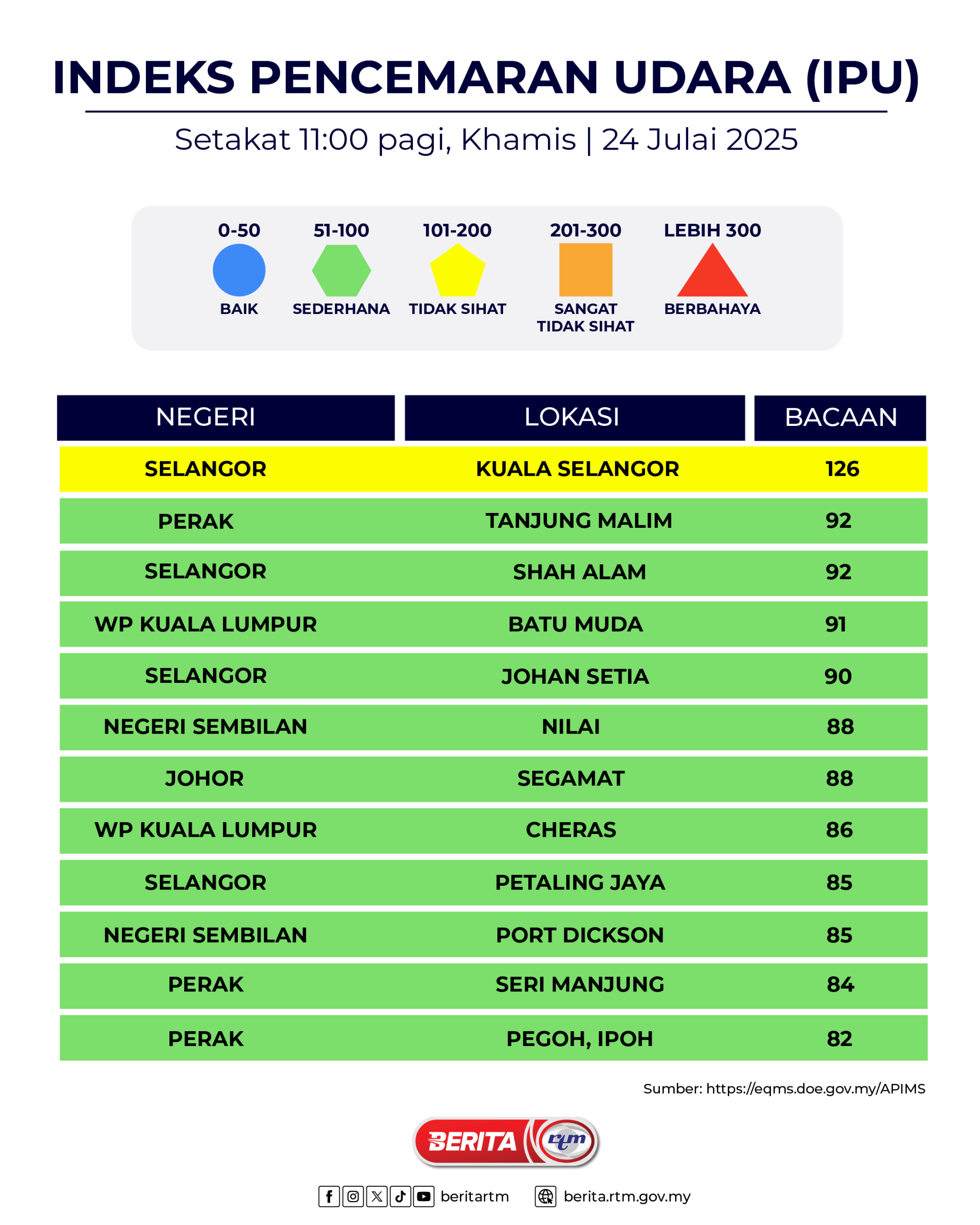 Utama Infografik INDEKS PENCEMARAN UDARA (IPU) INDEKS PENCEMARAN UDARA (IPU)24/07/2025 | 10:55 amInfografik Kongsi berita Share on X (Twitter) Share on Facebook Share on WhatsApp Share on Telegram Berita sebelumnyaLiverpool ikat penyerang Perancis Hugo Ekitike, £69 jutaBerita seterusnyaNegara stabil beri keyakinan Malaysia lantang suarakan isu global PALING POPULAR Test Dunia Test Dunia