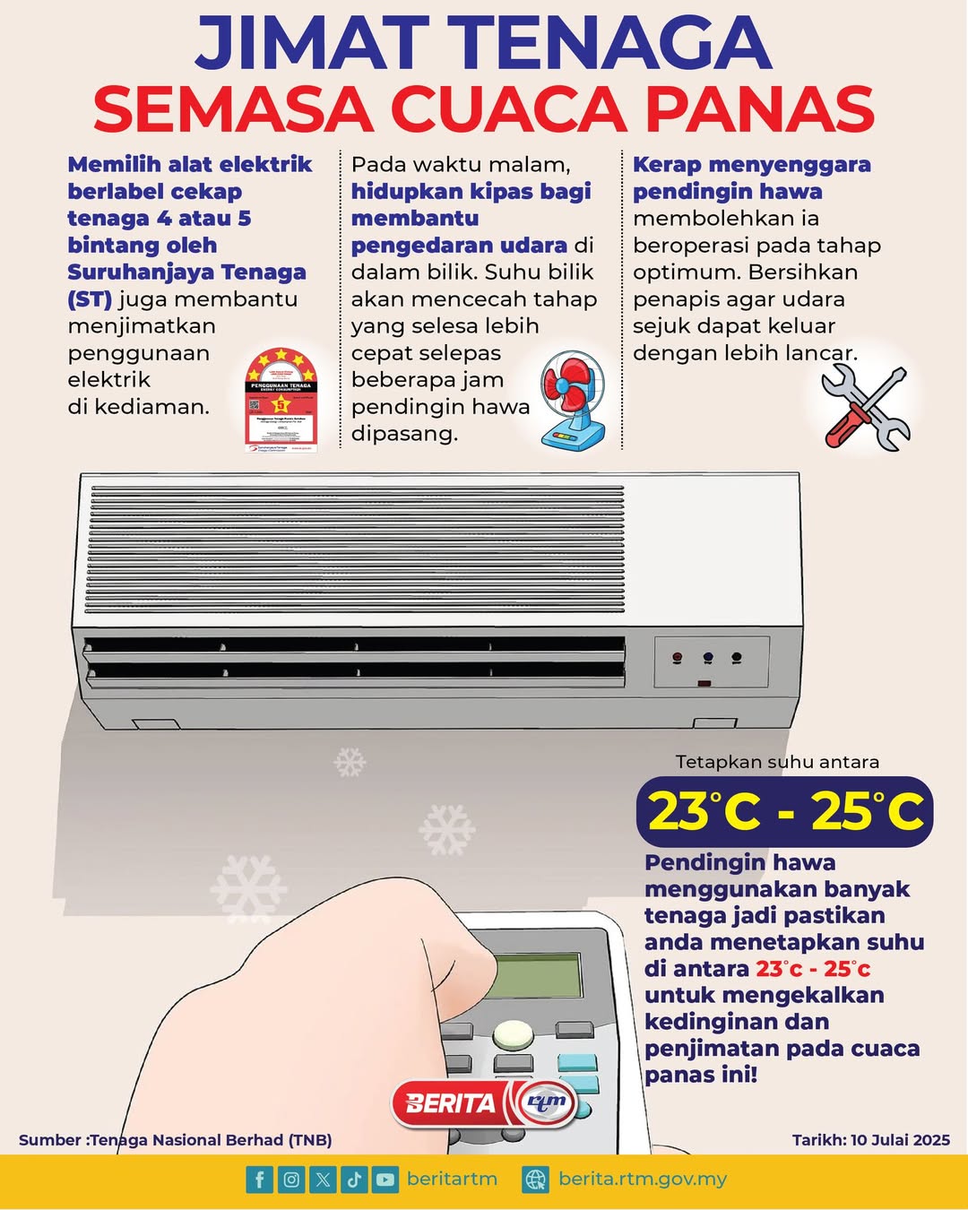 Utama Infografik JIMAT TENAGA SEMASA CUACA PANAS JIMAT TENAGA SEMASA CUACA PANAS10/07/2025 | 3:39 pmInfografik Kongsi berita Share on X (Twitter) Share on Facebook Share on WhatsApp Share on Telegram Berita sebelumnyaPelantikan hakim mahkamah atasan perlu cermat, elak dipolitikkanBerita seterusnyaPM terima kunjungan hormat Vijitha Herath PALING POPULAR Test berita palsu PRN DUN SABAH TEST 534 Sukan