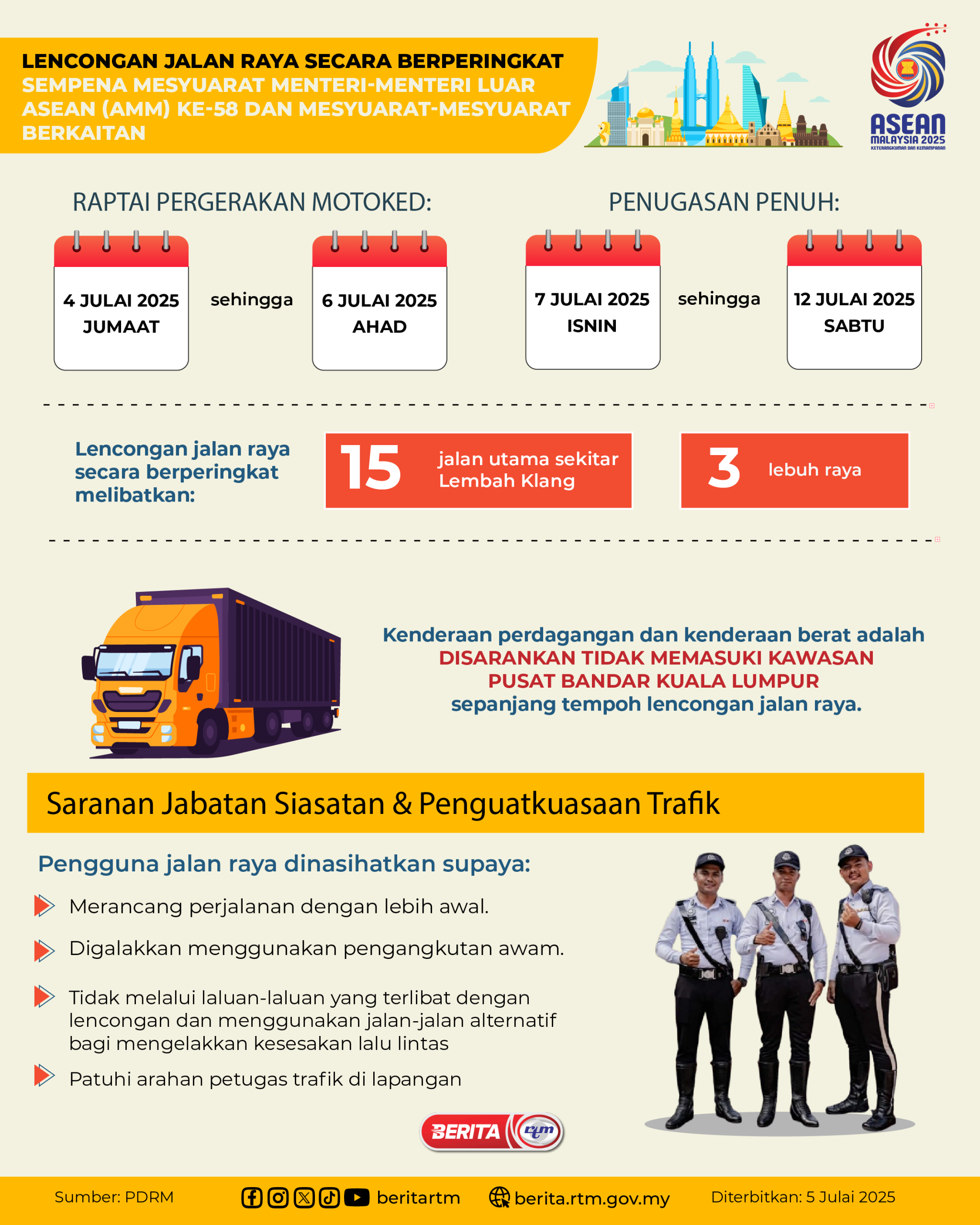 Utama Infografik LENCONGAN JALAN RAYA SECARA BERPERINGKAT SEMPENA MESYUARAT MENTERI-MENTERI LUAR ASEAN (AMM) KE-58 DAN MESYUARAT-MESYUARAT BERKAITAN LENCONGAN JALAN RAYA SECARA BERPERINGKAT SEMPENA MESYUARAT MENTERI-MENTERI LUAR ASEAN (AMM) KE-58 DAN MESYUARAT-MESYUARAT BERKAITAN5/07/2025 | 4:28 pmInfografik Kongsi berita Share on X (Twitter) Share on Facebook Share on WhatsApp Share on Telegram Berita sebelumnyaProjek ECRL capai kemajuan 85%Berita seterusnyaLENCONGAN JALAN RAYA SECARA BERPERINGKAT SEMPENA MESYUARAT MENTERI-MENTERI LUAR ASEAN ... PALING POPULAR Test Dunia Test Dunia