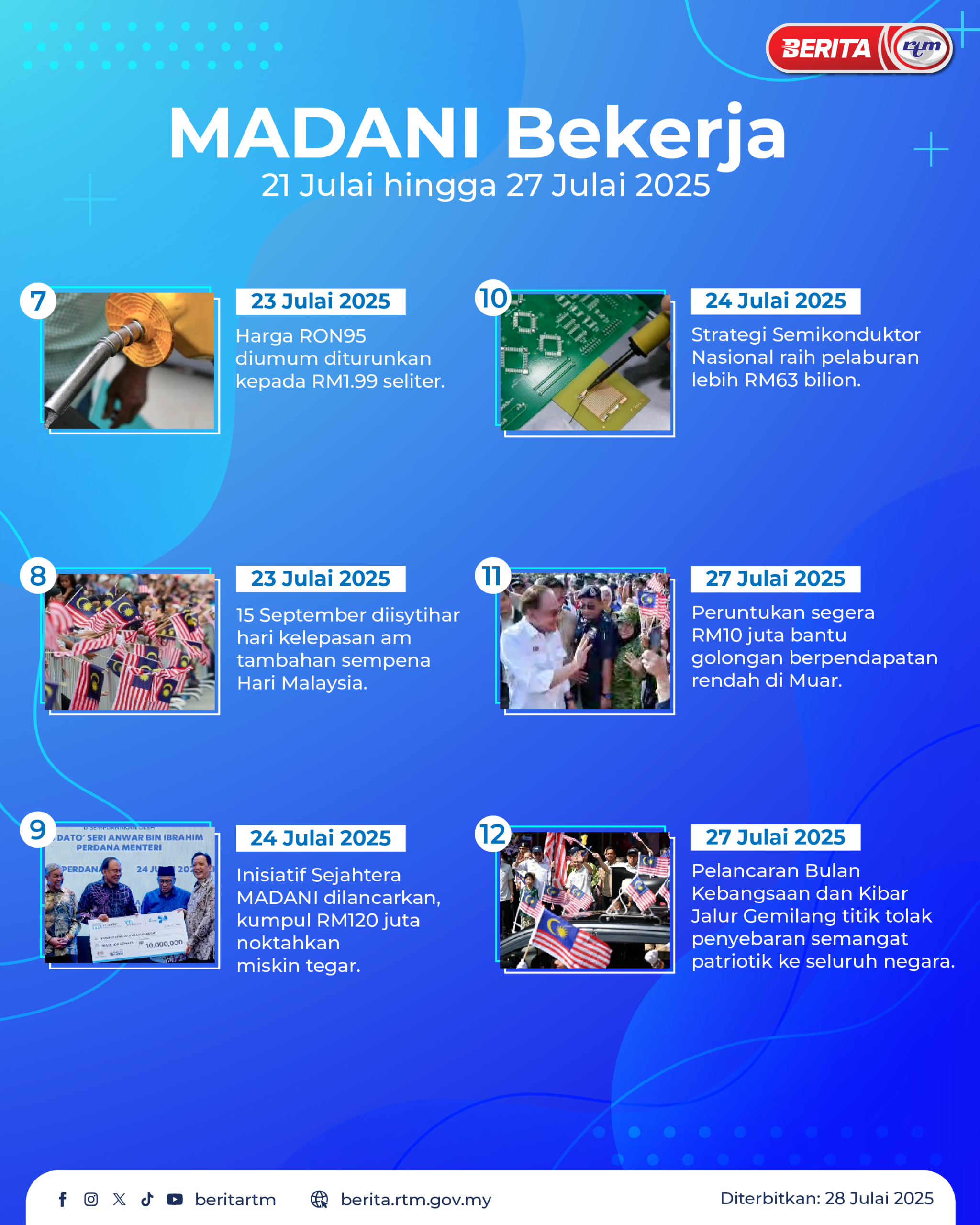 Utama Infografik MADANI BEKERJA 21 JULAI HINGGA 27 JULAI 2025 (2) MADANI BEKERJA 21 JULAI HINGGA 27 JULAI 2025 (2)28/07/2025 | 10:38 amInfografik Kongsi berita Share on X (Twitter) Share on Facebook Share on WhatsApp Share on Telegram Berita sebelumnyaMADANI BEKERJA 21 JULAI HINGGA 27 JULAI 2025 (1)Berita seterusnyaFernandez menang kejuaraan WTA 500 pertama di Terbuka DC PALING POPULAR Test Dunia Test Dunia