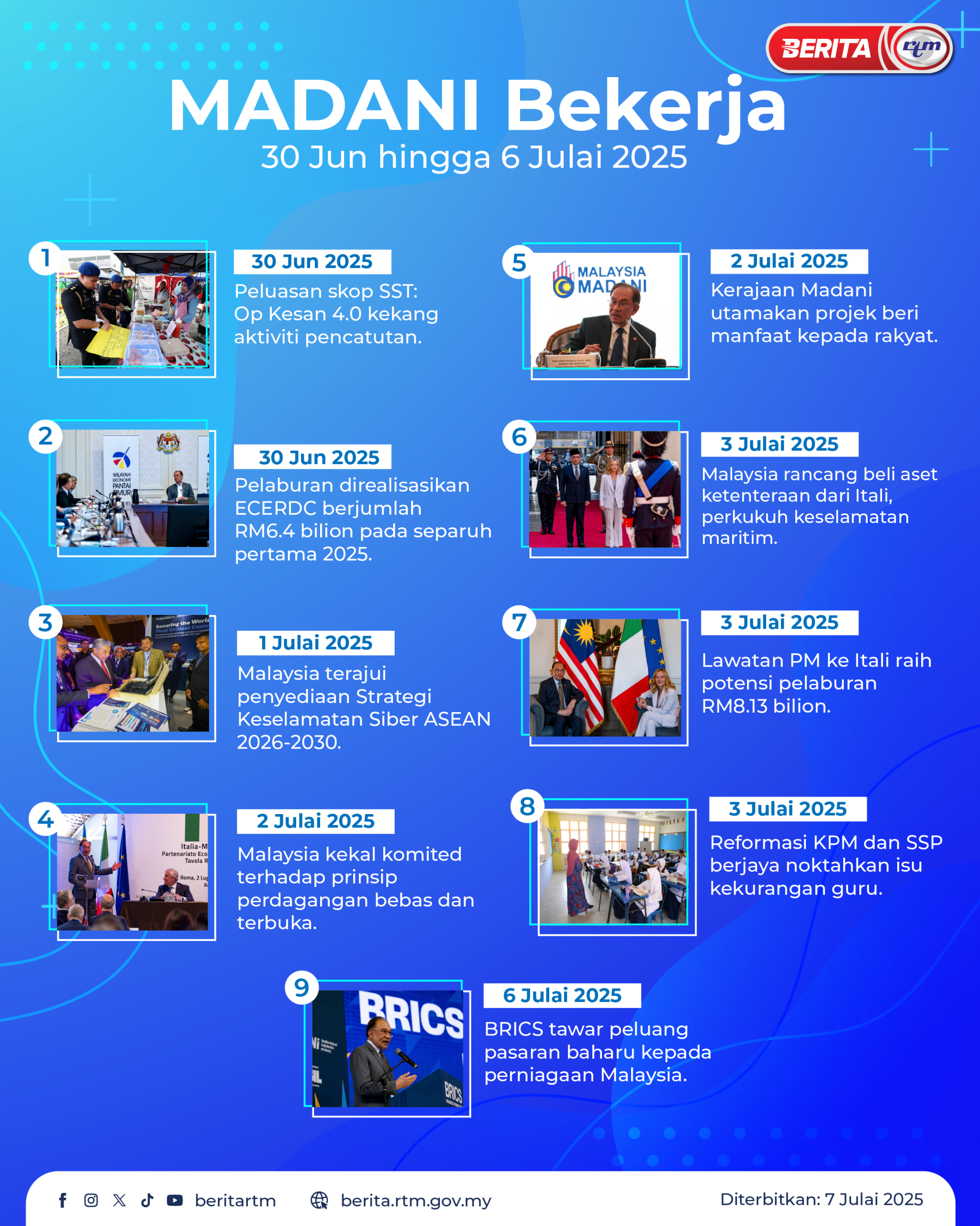 Utama Infografik MADANI BEKERJA 30 JUN HINGGA 6 JULAI 2025 MADANI BEKERJA 30 JUN HINGGA 6 JULAI 20257/07/2025 | 9:12 amInfografik Kongsi berita Share on X (Twitter) Share on Facebook Share on WhatsApp Share on Telegram Berita sebelumnyaAS jangka kuat kuasa tarif baharu 1 OgosBerita seterusnyaAMM ke-58: Malaysia jadi tumpuan diplomasi antarabangsa PALING POPULAR Test Dunia Test Dunia