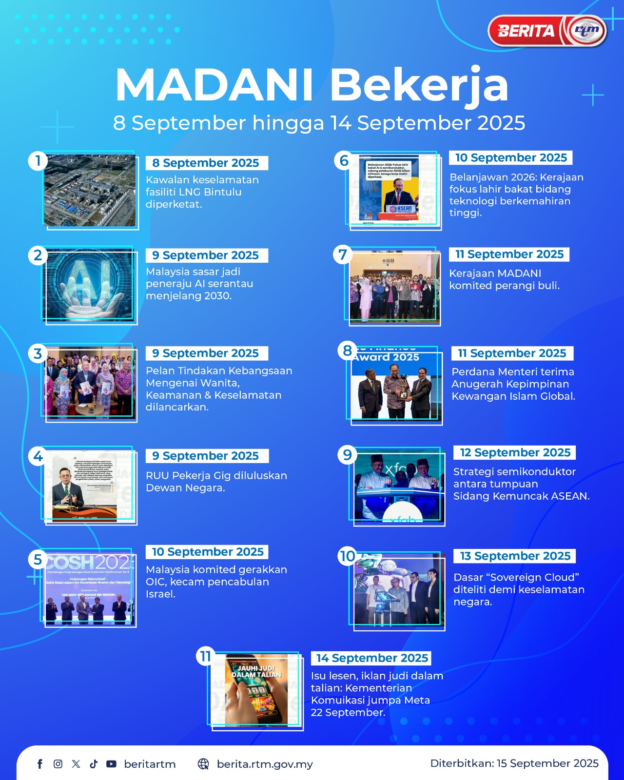 Utama Infografik MADANI BEKERJA 8-14 SEPTEMBER 2025 MADANI BEKERJA 8-14 SEPTEMBER 202515/09/2025 | 9:53 amInfografik Kongsi berita Share on X (Twitter) Share on Facebook Share on WhatsApp Share on Telegram Berita sebelumnyaLiga Argentina: Boca Juniors, Rosario Central kongsi mataBerita seterusnyaDelegasi Malaysia bergerak bersama armada antarabangsa ke Gaza PALING POPULAR Test Dunia Test Dunia