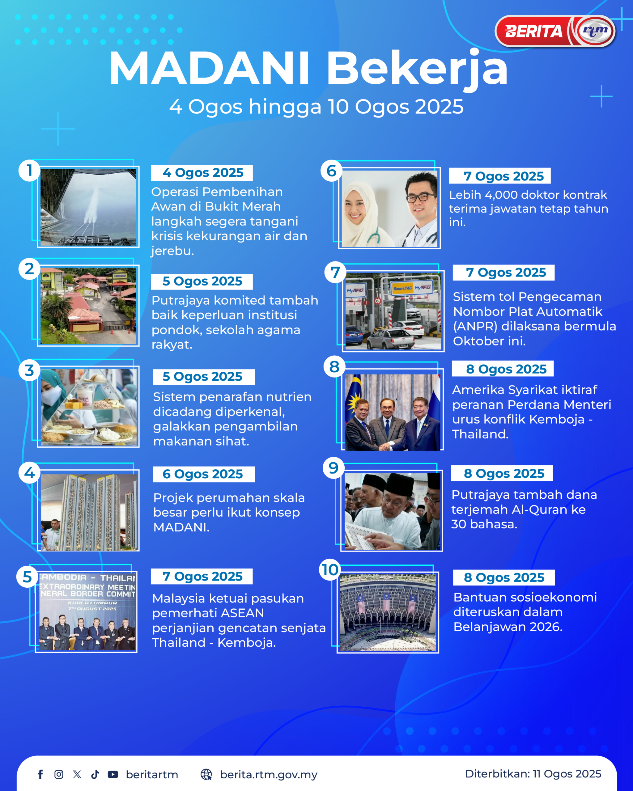 Utama Infografik MADANI BERKERJA 4 OGOS – 10 OGOS 2025 MADANI BERKERJA 4 OGOS – 10 OGOS 202511/08/2025 | 10:27 amInfografik Kongsi berita Share on X (Twitter) Share on Facebook Share on WhatsApp Share on Telegram Berita sebelumnyaAngka kematian di Gaza cecah 61,430, Israel didesak henti pengambilalihanBerita seterusnyaJIM keluar enam saman, tahan seorang warga FIlipina PALING POPULAR Test berita palsu PRN DUN SABAH TEST 534 Sukan