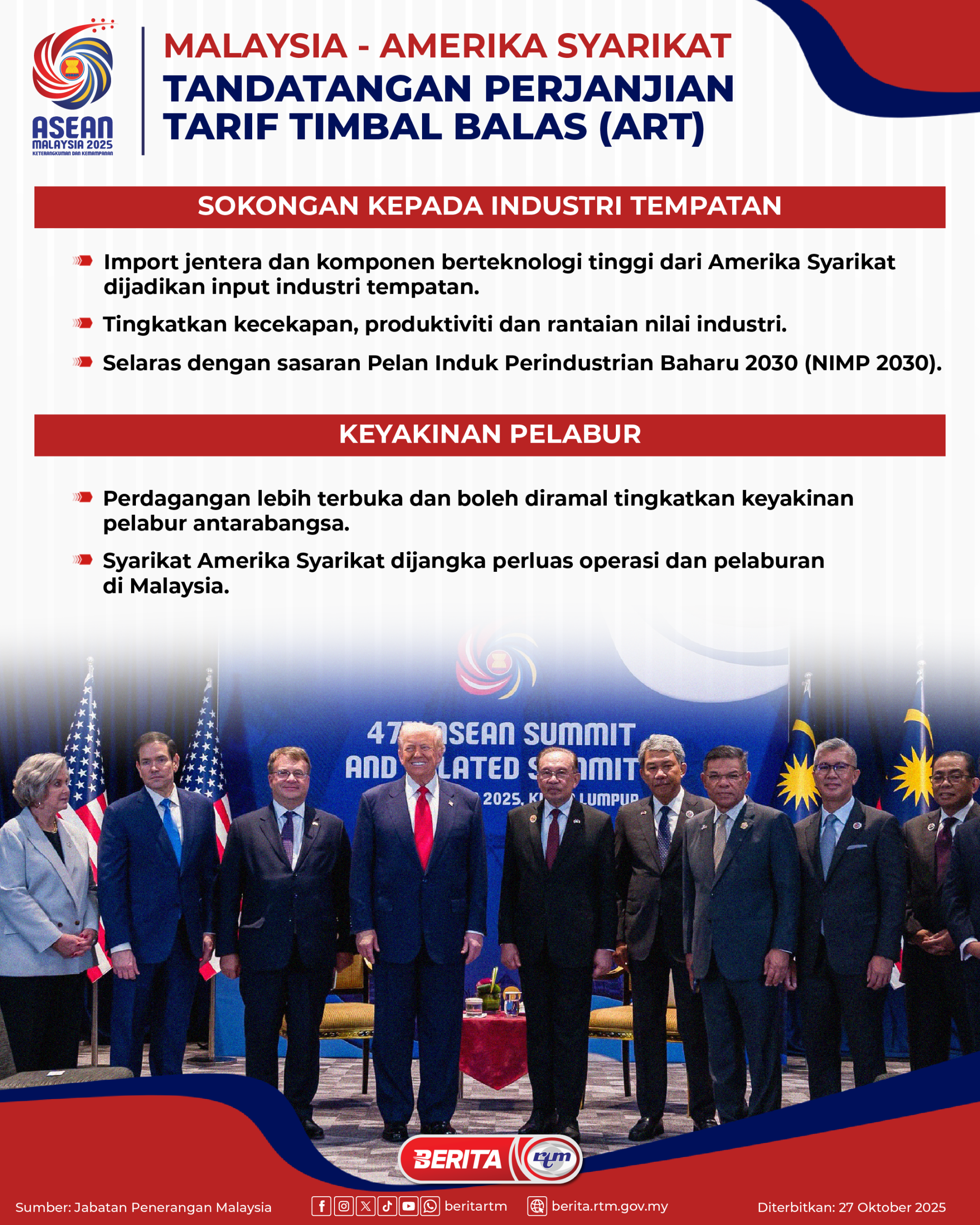 Utama Infografik MALAYSIA – AMERIKA SYARIKAT | TANDATANGAN PERJANJIAN TARIF TIMBAL BALAS (ART) (3) MALAYSIA – AMERIKA SYARIKAT | TANDATANGAN PERJANJIAN TARIF TIMBAL BALAS (ART) (3)27/10/2025 | 3:52 pmInfografik Kongsi berita Share on X (Twitter) Share on Facebook Share on WhatsApp Share on Telegram Berita sebelumnyaMALAYSIA – AMERIKA SYARIKAT | TANDATANGAN PERJANJIAN TARIF TIMBAL BALAS ...Berita seterusnyaSarawak: Insights Analytics Bhd disenaraikan di Pasaran ACE, raih RM43.56 ... PALING POPULAR Test Dunia Test Dunia