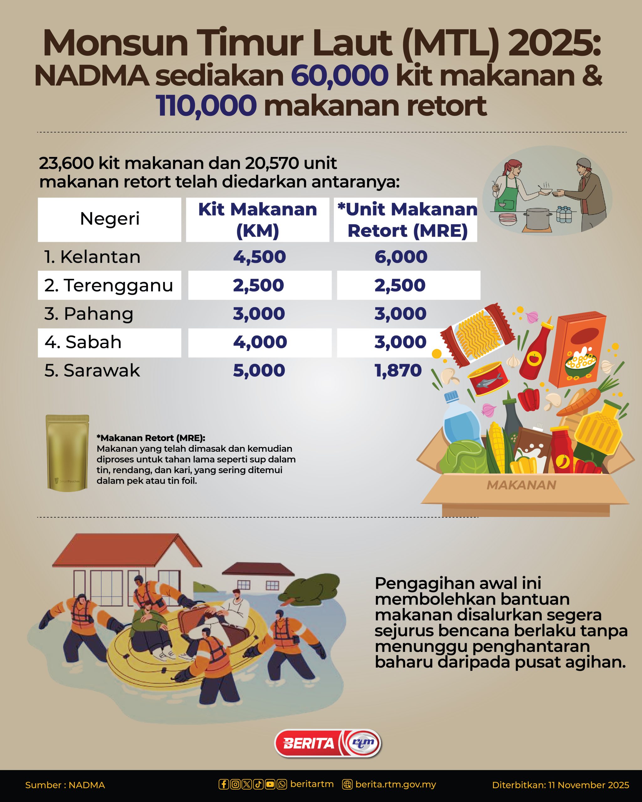 Utama Infografik Monsun Timur Laut (MTL) 2025: NADMA sediakan 60,000 kit makanan & 110,000 makanan retort Monsun Timur Laut (MTL) 2025: NADMA sediakan 60,000 kit makanan & 110,000 makanan retort11/11/2025 | 3:39 pmInfografik Kongsi berita Share on X (Twitter) Share on Facebook Share on WhatsApp Share on Telegram Berita sebelumnyaDalang insiden letupan kereta tidak akan terlepas – Menteri Pertahanan ...Berita seterusnyaPertumbuhan KDNK berpotensi capai paras lebih tinggi PALING POPULAR Test Dunia Test Dunia