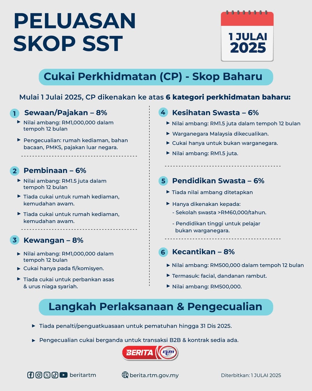 Utama Infografik PELUASAN SKOP SST_1 PELUASAN SKOP SST_12/07/2025 | 10:03 pmInfografik Kongsi berita Share on X (Twitter) Share on Facebook Share on WhatsApp Share on Telegram Berita sebelumnyaRinggit ditutup lebih rendah menjelang tarikh akhir tarif ASBerita seterusnyaPELUASAN SKOP SST_2 PALING POPULAR Test Dunia Test Dunia