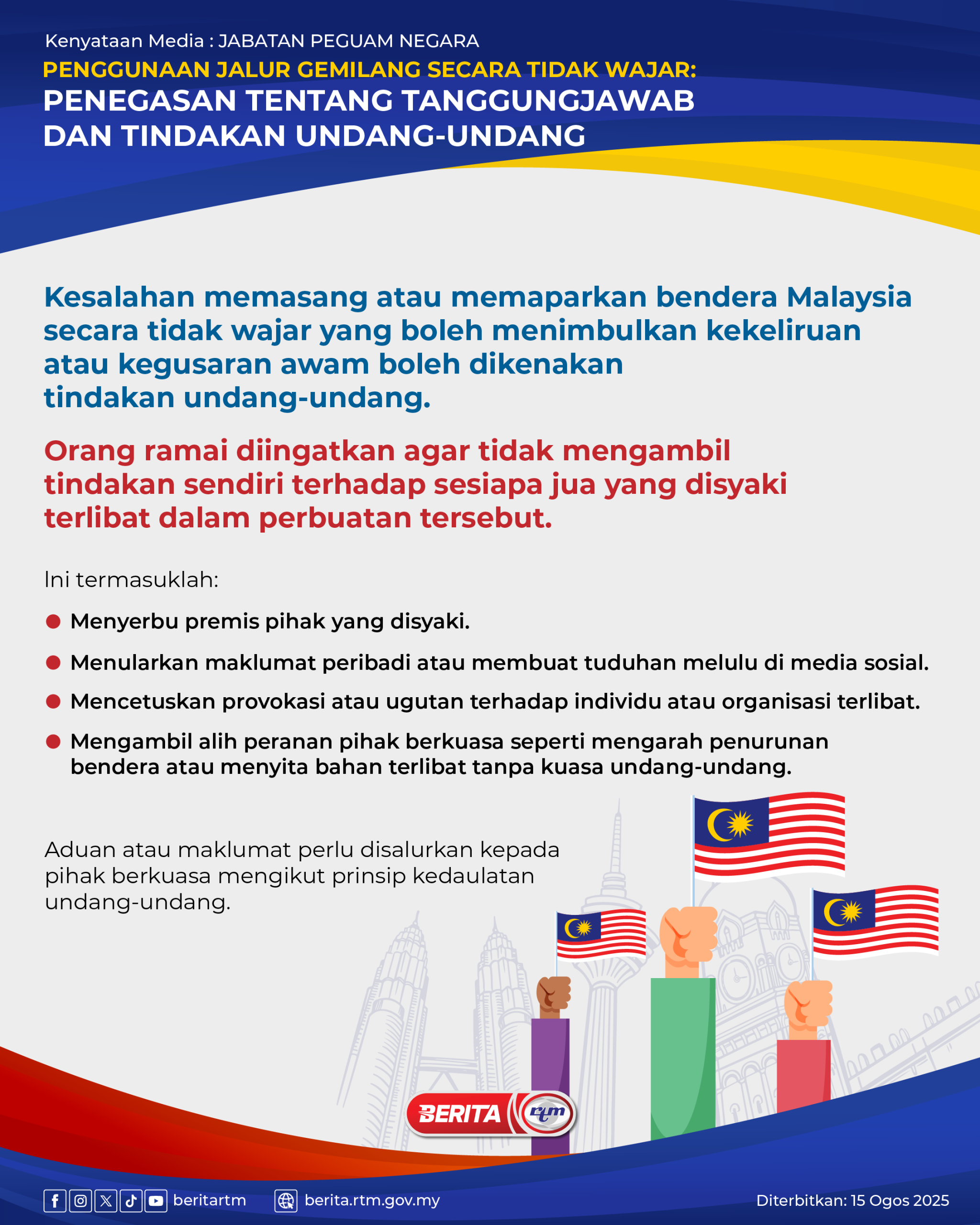 Utama Infografik PENGGUNAAN JALUR GEMILANG SECARA TIDAK WAJAR: PENEGASAN TENTANG TANGGUNGJAWAB DAN TINDAKAN UNDANG-UNDANG (2) PENGGUNAAN JALUR GEMILANG SECARA TIDAK WAJAR: PENEGASAN TENTANG TANGGUNGJAWAB DAN TINDAKAN UNDANG-UNDANG (2)15/08/2025 | 7:07 pmInfografik Kongsi berita Share on X (Twitter) Share on Facebook Share on WhatsApp Share on Telegram Berita sebelumnyaPENGGUNAAN JALUR GEMILANG SECARA TIDAK WAJAR: PENEGASAN TENTANG TANGGUNGJAWAB DAN ...Berita seterusnyaColwill berehat panjang, Maresca mahu pertahanan tengah baharu PALING POPULAR Test Dunia Test Dunia