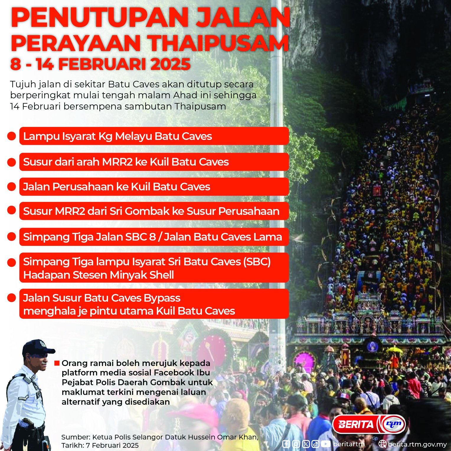 Utama Infografik PENUTUPAN JALAN SEMPENA THAIPUSAM 2025 PENUTUPAN JALAN SEMPENA THAIPUSAM 20257/02/2025 | 9:34 pmInfografik Kongsi berita Share on X (Twitter) Share on Facebook Share on WhatsApp Share on Telegram Berita sebelumnyaPEMBUKAAN PERMOHONAN UPUOnline®️ BAGI KEMASUKAN KE INSTITUSI PENDIDIKAN TINGGI AWAM ...Berita seterusnyaJalan sekitar ipoh ditutup bermula isnin sempena sambutan Thaipusam PALING POPULAR Test berita palsu PRN DUN SABAH TEST 534 Sukan