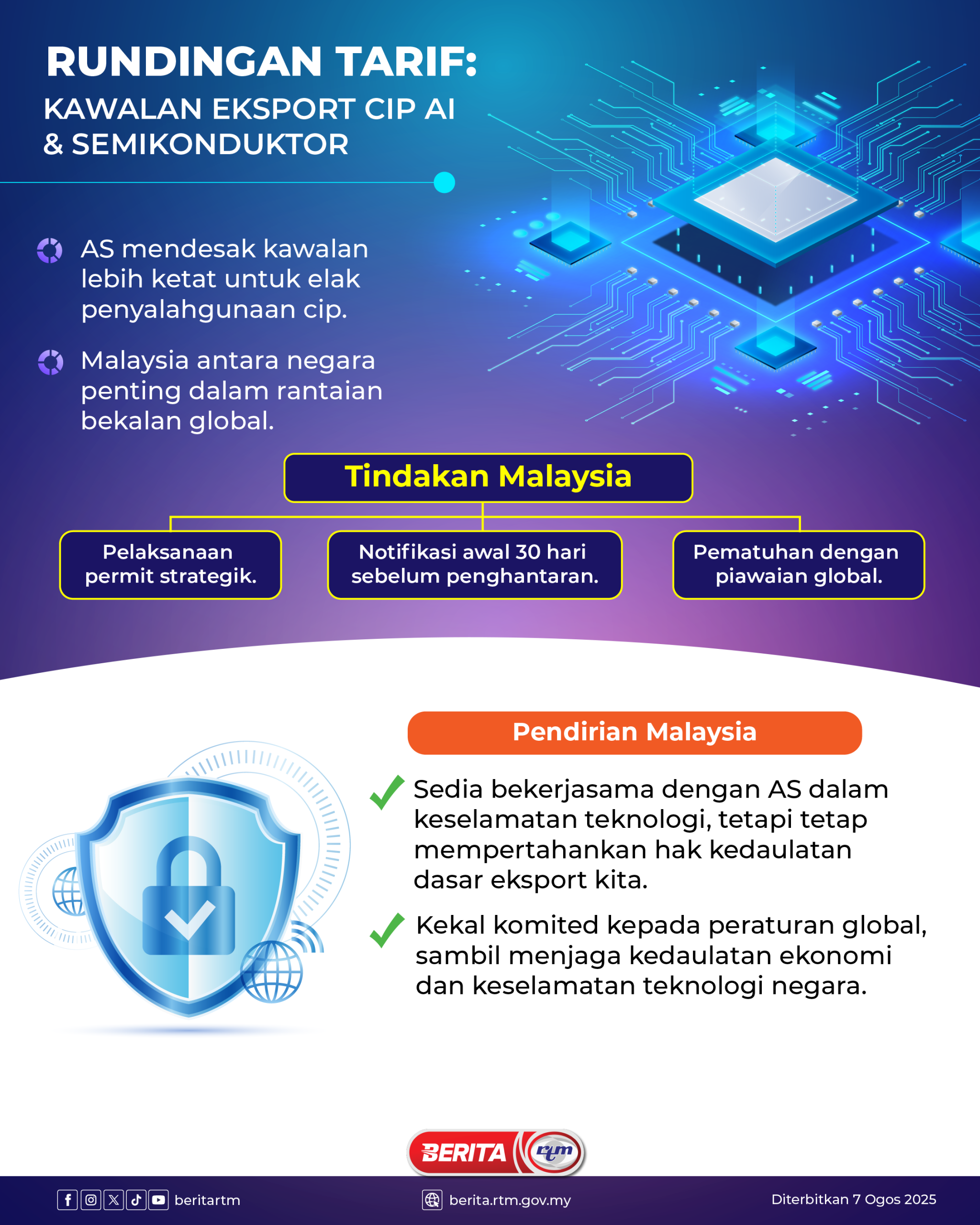 Utama Infografik RUNDINGAN TARIF: KAWALAN EKSPORT CIP AI & SEMIKONDUKTOR RUNDINGAN TARIF: KAWALAN EKSPORT CIP AI & SEMIKONDUKTOR7/08/2025 | 10:37 pmInfografik Kongsi berita Share on X (Twitter) Share on Facebook Share on WhatsApp Share on Telegram Berita sebelumnyaSultan Ibrahim berangkat ke pusat pembangunan teknologi automotif RusiaBerita seterusnyaYDP Agong teroka teknologi dron Rusia di Tochka Kipeniya PALING POPULAR Test Dunia Test Dunia