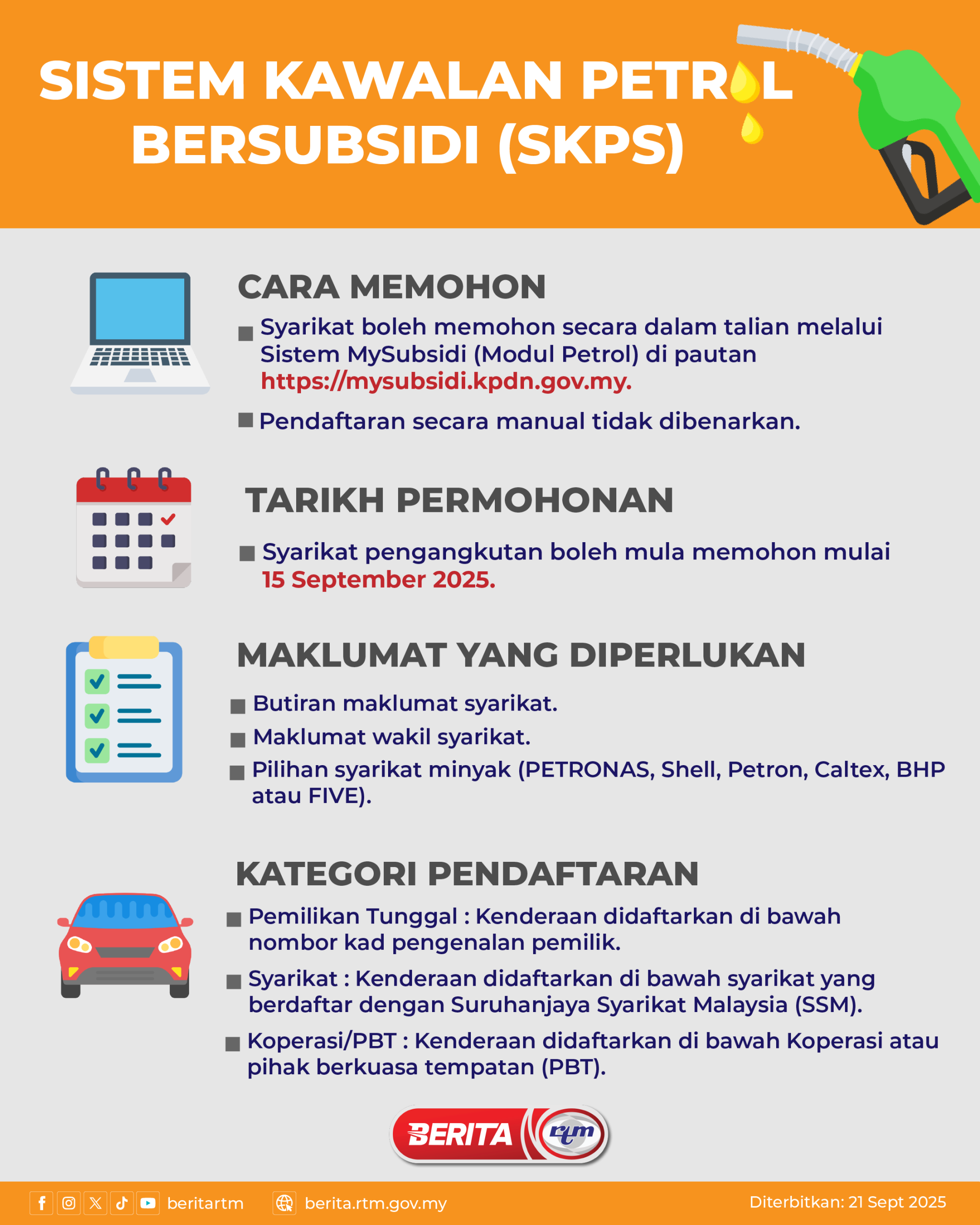 Utama Infografik SISTEM KAWALAN PETROL BERSUBSIDI (SKPS) SISTEM KAWALAN PETROL BERSUBSIDI (SKPS)21/09/2025 | 3:37 pmInfografik Kongsi berita Share on X (Twitter) Share on Facebook Share on WhatsApp Share on Telegram Berita sebelumnyaUiTM terajui agenda ECIC 2025Berita seterusnyaTang Jie-Ee Wei rangkul naib juara China Masters 2025 PALING POPULAR Test berita palsu PRN DUN SABAH TEST 534 Sukan