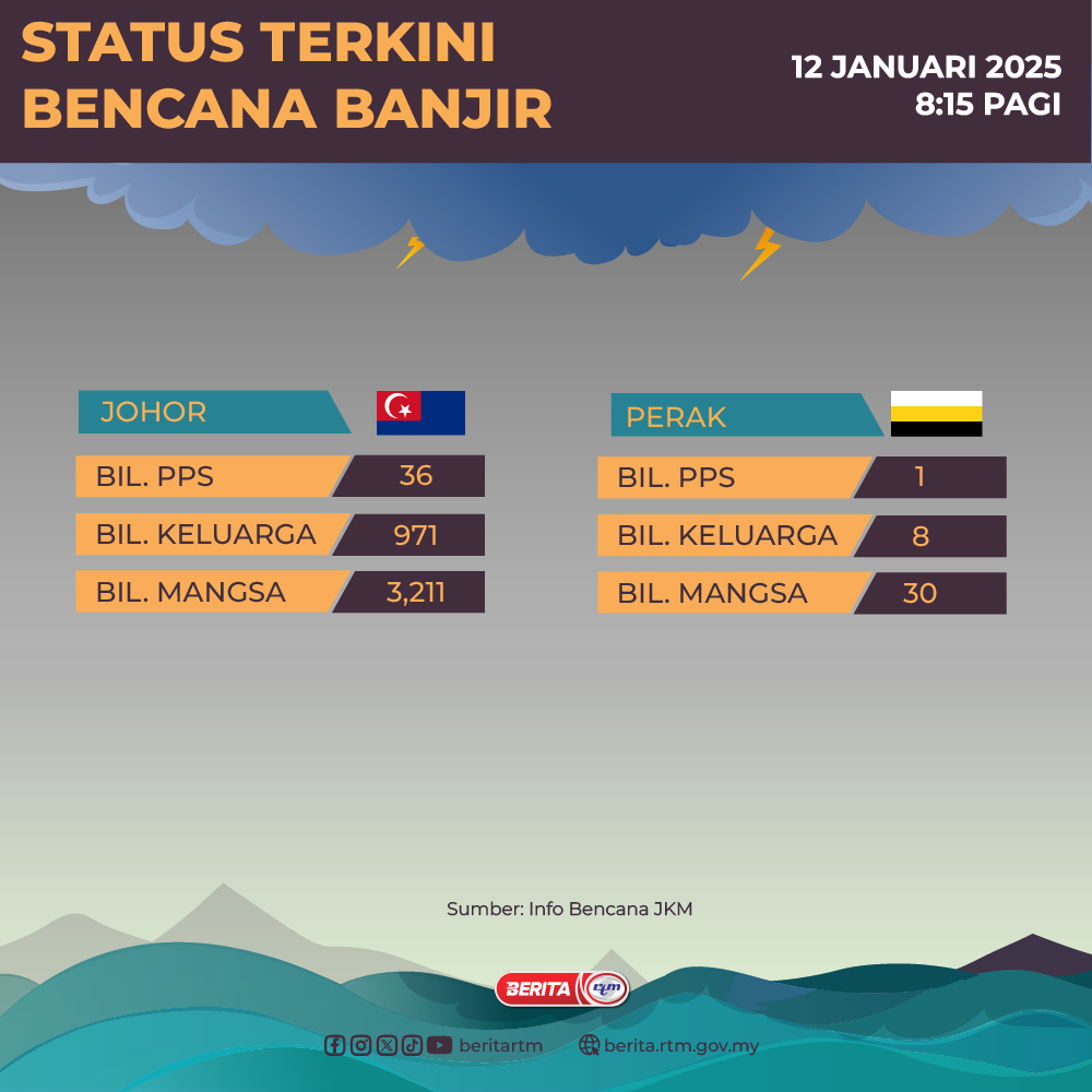 Utama Infografik STATUS BENCANA BANJIR – 12 JANUARI 2025, 8:15 PAGI STATUS BENCANA BANJIR – 12 JANUARI 2025, 8:15 PAGI12/01/2025 | 8:22 amInfografik Kongsi berita Share on X (Twitter) Share on Facebook Share on WhatsApp Share on Telegram Berita sebelumnyaSekatan terhadap sektor tenaga, Rusia kecam tindakan ASBerita seterusnya2 maut dalam kemalangan bas ekspres di Jerman PALING POPULAR Test Dunia Test Dunia