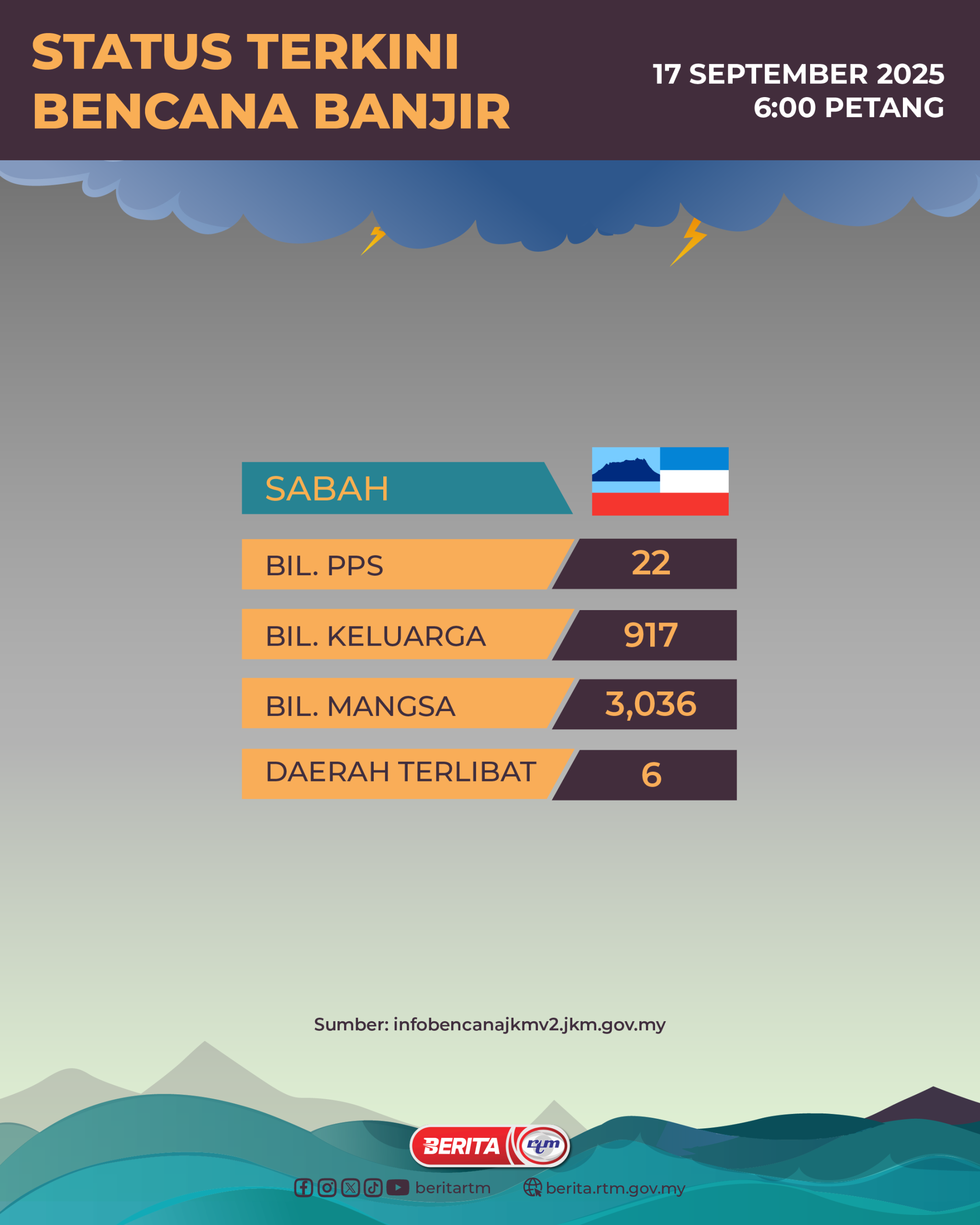 Utama Infografik STATUS TERKINI BENCANA BANJIR 17 SEPTEMBER 2025 | 6.00 PETANG STATUS TERKINI BENCANA BANJIR 17 SEPTEMBER 2025 | 6.00 PETANG17/09/2025 | 6:42 pmInfografik Kongsi berita Share on X (Twitter) Share on Facebook Share on WhatsApp Share on Telegram Berita sebelumnyaPartey nafi tuduhan rogol, serangan seksual di mahkamahBerita seterusnyaUgutan video AI: Siasatan masih berjalan PALING POPULAR Test Dunia Test Dunia