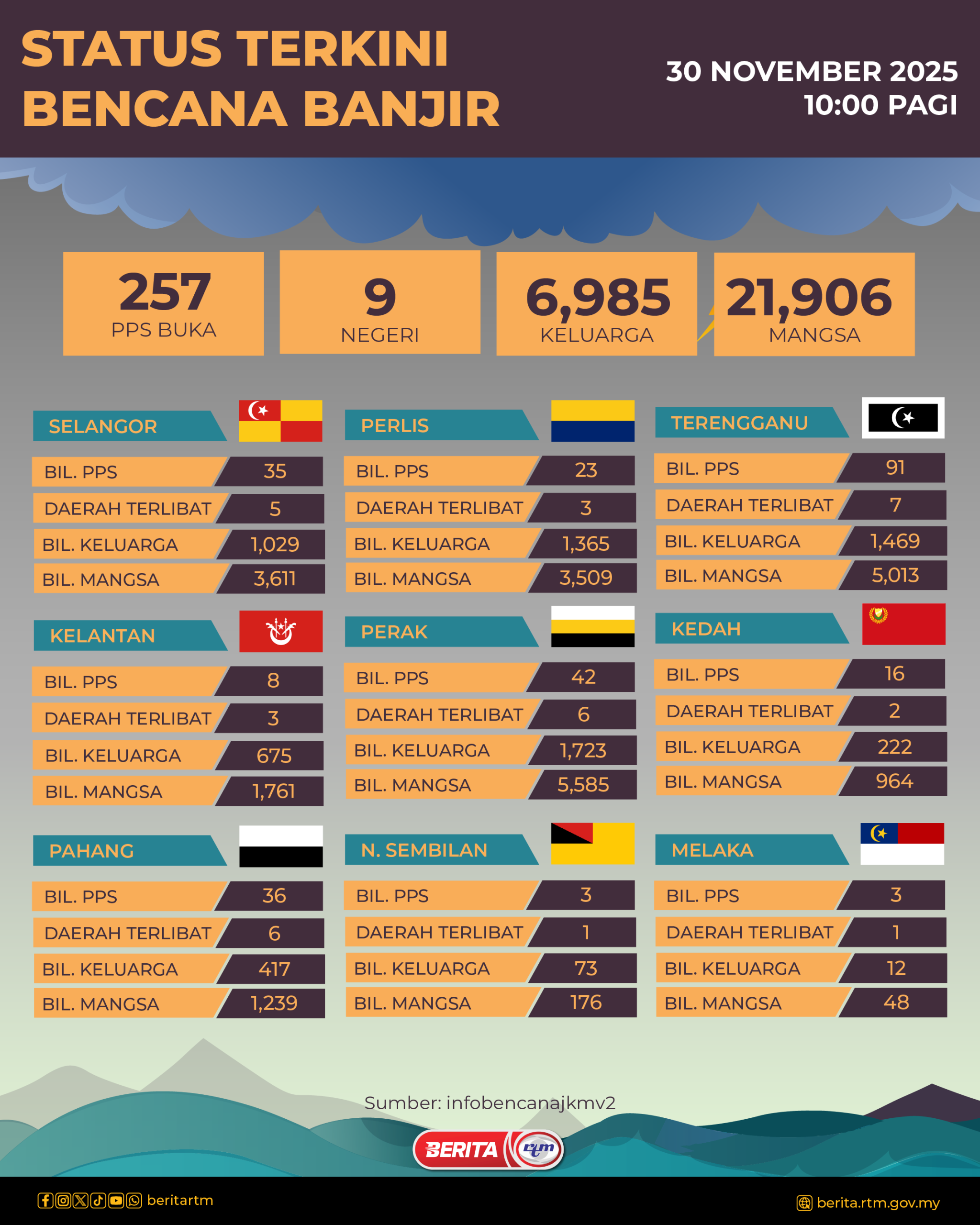 Utama Infografik STATUS TERKINI BENCANA BANJIR STATUS TERKINI BENCANA BANJIR30/11/2025 | 10:20 amInfografik Kongsi berita Share on X (Twitter) Share on Facebook Share on WhatsApp Share on Telegram Berita sebelumnyaKehidupan digital yang sihatBerita seterusnyaBanjir di Sumatera: Angka korban lepasi 300 PALING POPULAR Test Dunia Test Dunia