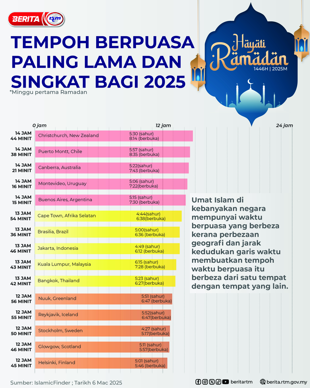 Utama Infografik TEMPOH BERPUASA PALING LAMA DAN SINGKAT BAGI TAHUN 2025 TEMPOH BERPUASA PALING LAMA DAN SINGKAT BAGI TAHUN 20256/03/2025 | 9:35 pmInfografik Kongsi berita Share on X (Twitter) Share on Facebook Share on WhatsApp Share on Telegram Berita sebelumnyaPengekalan OPR dijangka penganalisis, seiring ekonomi semasaBerita seterusnyaOp Ramadan 2025: 4,112 premis makanan diperiksa di Perak PALING POPULAR Test berita palsu PRN DUN SABAH TEST 534 Sukan