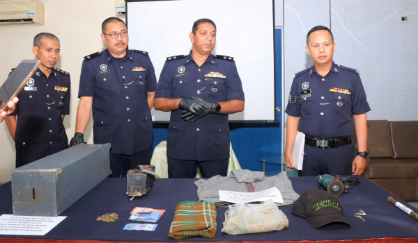 Jelasnya, kenderaan Perodua Kancil, dua tabung besi, wang RM120 dan peralatan digunakan suspek turut dirampas.