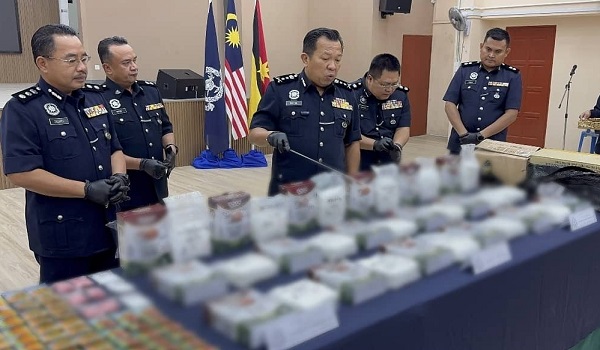 “Rampasan melibatkan pelbagai jenis dadah antaranya MDMA seberat 14,373.41 gram, Erimin 5 (126.84 gram), Ketamin (149.80 gram) dan Syabu (2,168.74 gram) dengan nilai hampir RM480,000,” katanya dalam sidang media di Ibu Pejabat Polis Daerah Bintulu, pagi tadi.