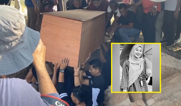Terdahulu, jenazah Nur Farah Kartini, 25, selamat dikebumikan pada pukul 5.20 petang di Tanah Perkuburan Kampung Nyiur Manis.