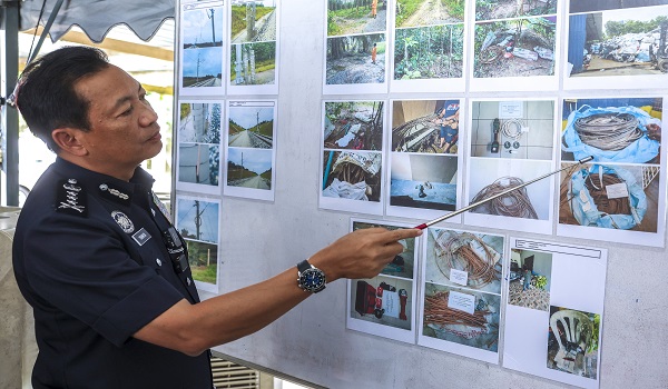Dalam operasi itu, polis turut merampas barangan bernilai RM100,000 termasuk sebuah lori, kereta, kabel tembaga serta peralatan memotong.
