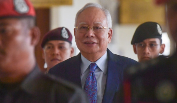 Bekas Perdana Menteri itu berdepan empat pertuduhan menggunakan kedudukannya untuk mendapatkan suapan berjumlah RM2.3 bilion daripada dana 1MDB serta 21 pertuduhan pengubahan wang haram membabitkan jumlah yang sama.
