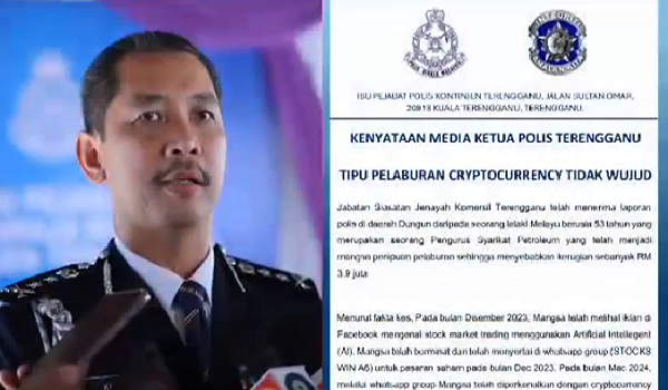 KUALA TERENGGANU, 21 Jun – Seorang lelaki berusia 53 tahun yang juga seorang Pengurus Syarikat Petroleum menjadi mangsa penipuan pelaburan membabitkan kerugian sebanyak RM3.9 juta di Dungun.