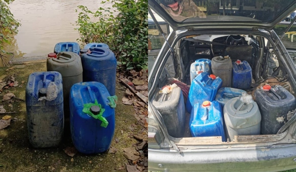 “Hasil pemeriksaan menemukan 10 tong jerikin mengandungi kira-kira 300 liter minyak petrol di dalam kenderaan itu.
