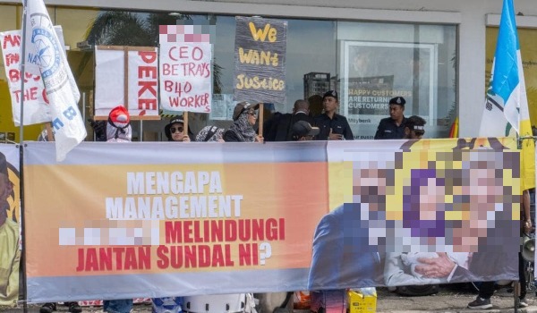 Demonstrasi diadakan sebagai protes terhadap pengurusan bank yang didakwa tidak mengambil tindakan terhadap pegawai yang terlibat dalam kes gangguan seksual.