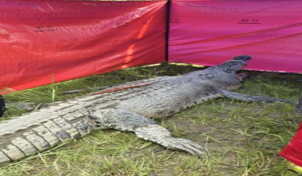 Pihak Sarawak Forestry Corporation dibantu pasukan bombda dan beberapa agensi lain, kemudiannya melakukan proses pembedahan terhadap buaya berkenaan.