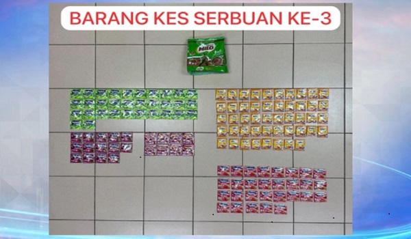 Serbuan itu membawa penemuan 235 paket plastik pelbagai warna berisi serbuk disyaki MDMA seberat 5.7 kilogram serta 17.5 gram dadah ketamin.