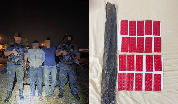 Komander Briged Tenggara, Datuk Nik Ros Azhan Nik Ab Hamid berkata, dua lelaki tempatan berusia 28 dan 32 tahun ditahan selepas pemeriksaan ke atas kenderaan mereka pada 3.30 pagi.