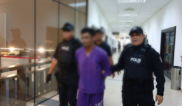 Suspek lelaki berusia 32 tahun itu tiba di mahkamah sekitar pukul 9.00 pagi dan tidak diiringi peguam.