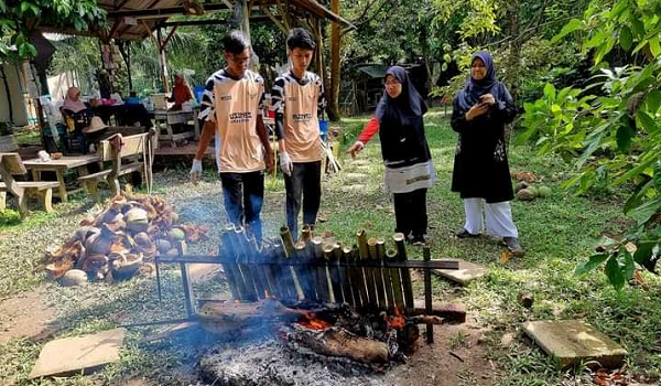 Menti turut diberikan peluang menebang dan memotong buloh yang sesuai untuk membuat lemang. Malah proses membersih buloh, mengait kelapa, mengkukur kelapa dan memerah santan secara tradisional turut dilaksanakan secara praktikal.