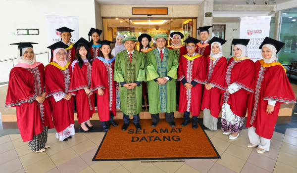Tambahnya, kejayaan graduan tahun ini turut disokong oleh jaringan kerjasama kukuh dengan industri agromakanan dan rakan strategik. Antaranya, Pingat Emas Doktor Falsafah Malaysian Vaccines and Pharmaceuticals yang dianugerahkan kepada Dr. Tan Hui Ya (PhD Bioteknologi Makanan).