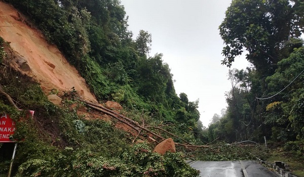 Terdahulu, sebahagian laluan di jalan tersebut ditutup sementara selepas kejadian tanah runtuh berhampiran kawasan Anjung Indah yang berlaku kira-kira pukul 5.00 petang.