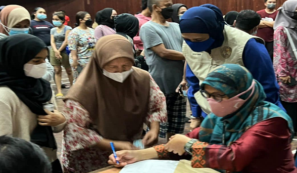 (Datuk Mastura Mohd Yazid meninjau bantuan diberikan kepada mangsa banjir yang ditempatkan di PPS Kelab Sultan Sulaiman Kampung Baru./Foto FB Mastura Yazid)