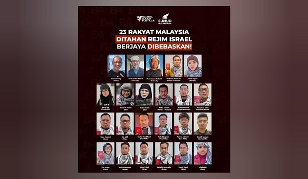 Pada Khamis lepas, seramai 23 aktivis Malaysia yang menyertai misi GSF ditahan tentera rejim Zionis selepas kapal mereka dipintas ketika berada di perairan Zon Merah R3 di Laut Mediterranean sebelum dibawa ke pelabuhan Ashdod, Israel.