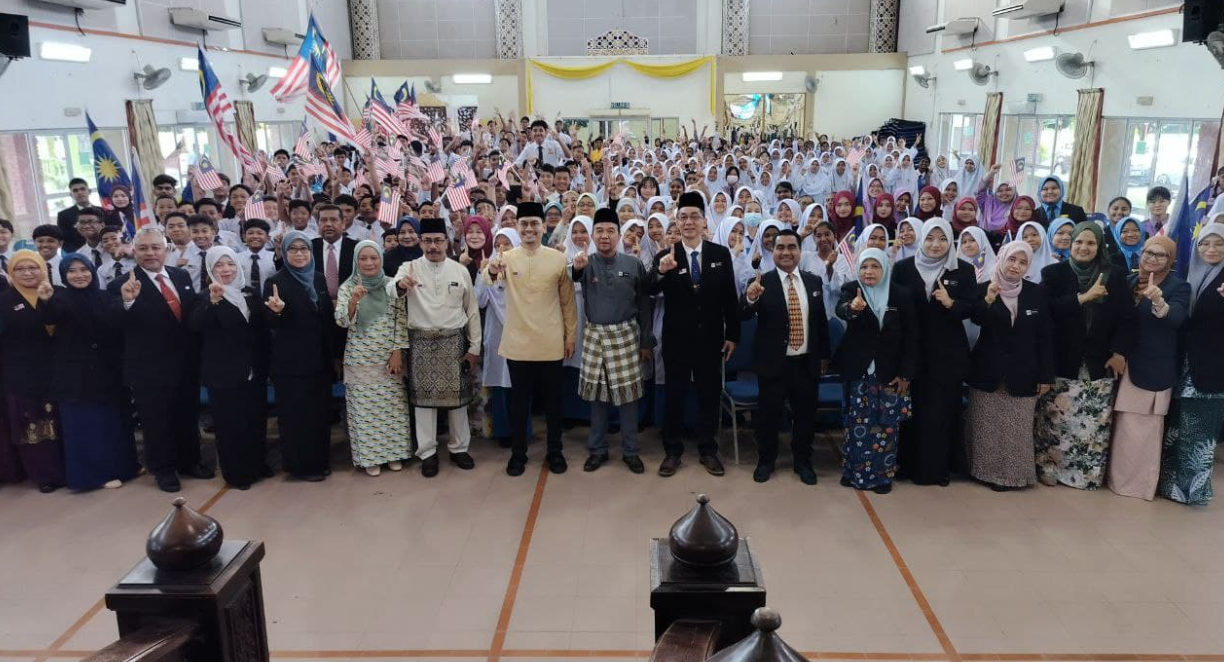 Beliau berkata, majlis yang diadakan hari ini merupakan satu komitmen bersama bagi memastikan semangat patriotisme dan cinta akan negara dalam kalangan murid dan warga pendidik terus kekal dan subur.