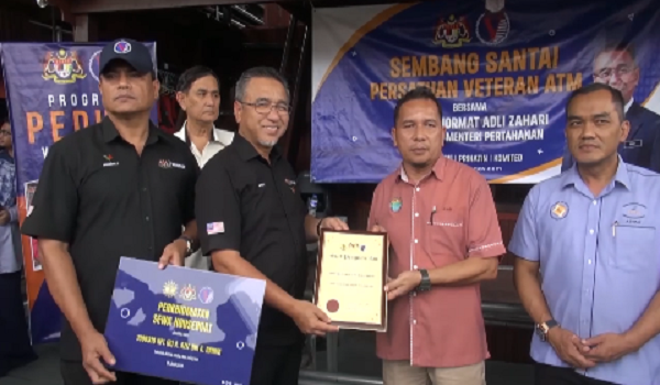 (Adly menyampaikan sijil kepada veteran ATM, A.Aziz A.Rahim, 51 tahun yang berkecimpung